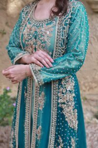 Skilled artisans meticulously hand-embellish the fabric, adding intricate designs and luxurious details to your dress.