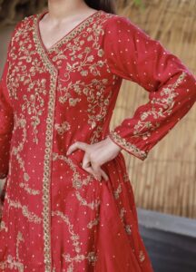 A, Fabric like Jamawar, Banarsi, and brocade are ideal because they keep the cultural essence, on the other hand Silk, chiffon and organdy are thin in weight but high on class. And for a regal look, Velvet will make all the right statements as it is very rich in appearance.