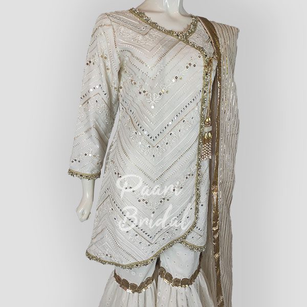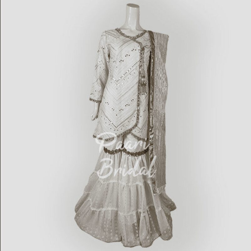 Don’t miss out on this perfect blend of tradition and modernity. The 3-layer White Banarsi Gharara is not just a dress; it’s a statement of elegance and sophistication.