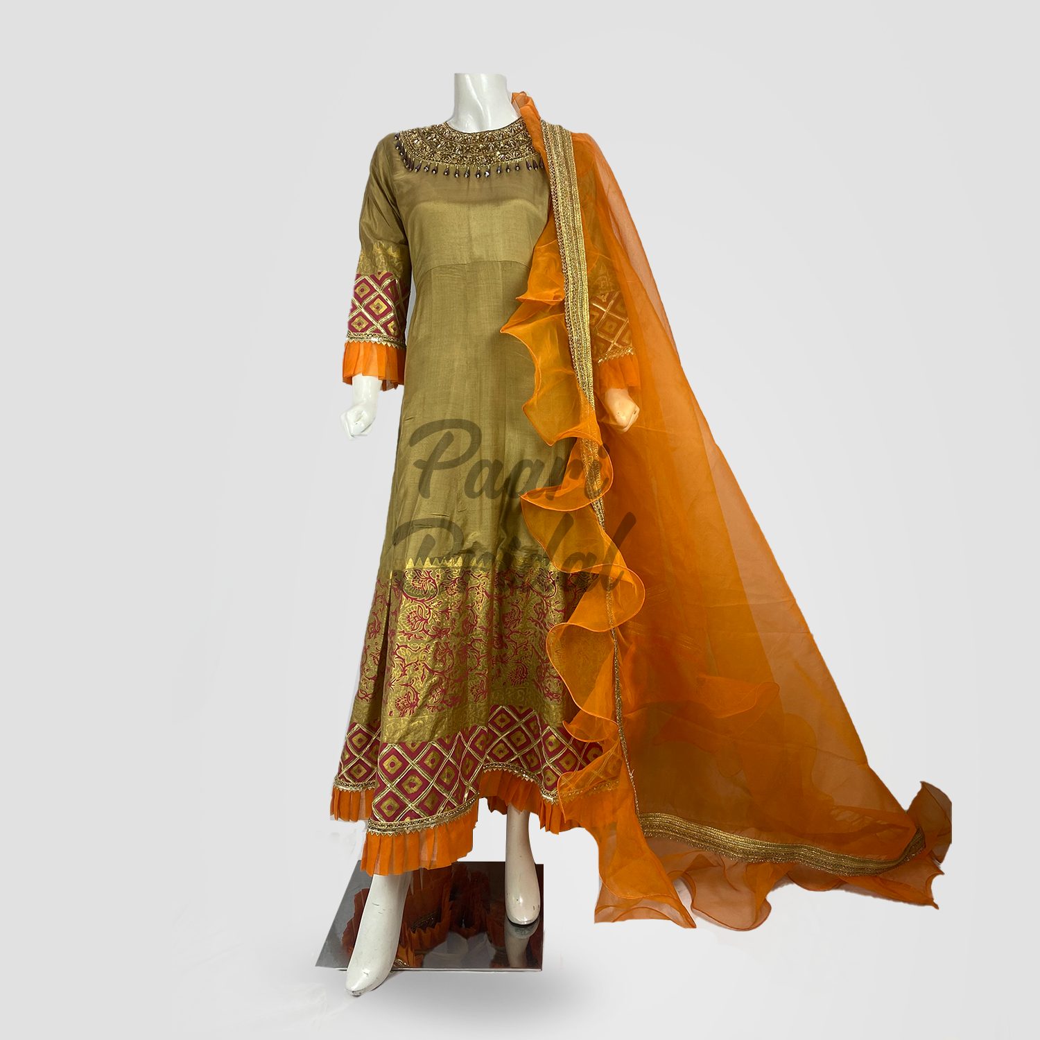 Golden Orange Glow Cove Dress – Stunning Party Wear