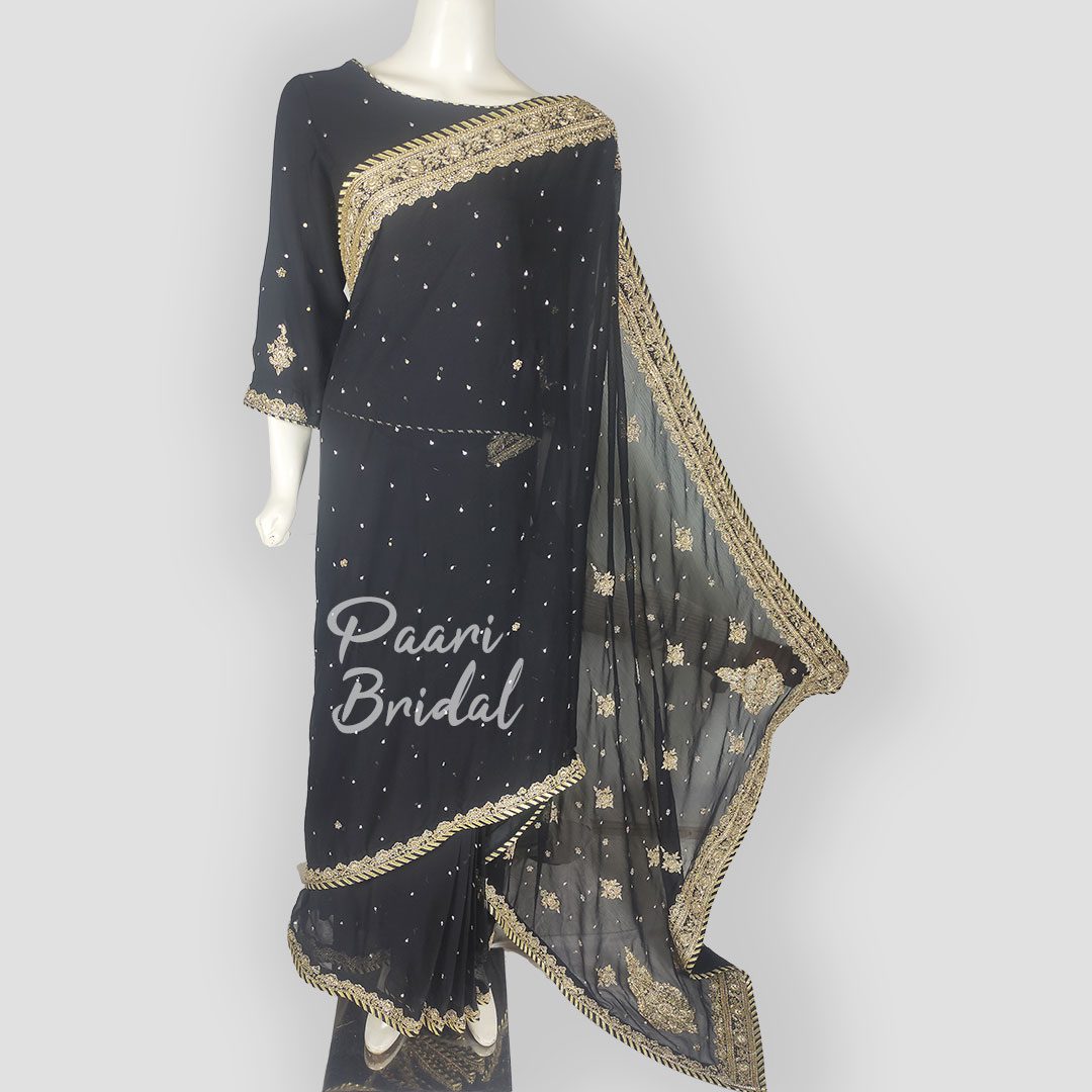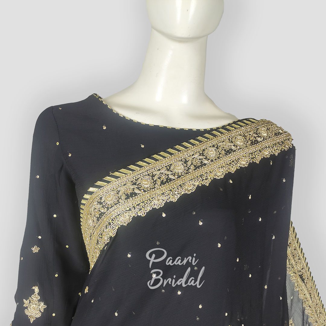 Handmade Cuora Dabka Saree – Elegant Black Design