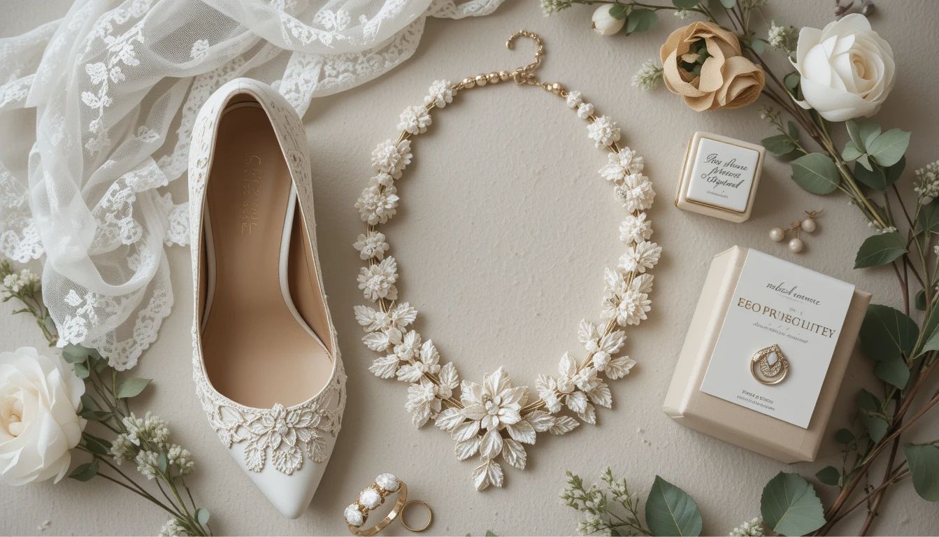 A bridal look is never complete without the perfect accessories. In sustainable bridal fashion trends 2025, eco-friendly veils, shoes, and jewelry are taking center stage. Brides today want beauty, but they also want choices that respect the planet. That’s why many are now picking upcycled bridal jewelry and ethically sourced pieces.